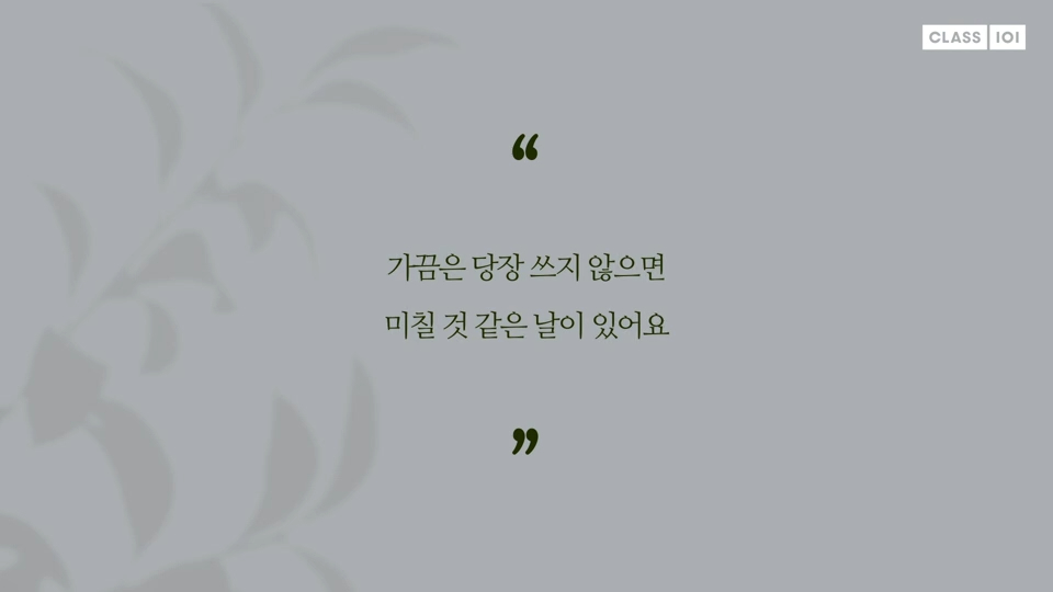 이처럼 글로 스스로의 감정을 솔직하게 표현하다 보면, 내가 가장 듣고 싶었던 내면의 목소리를 직면하곤 합니다.