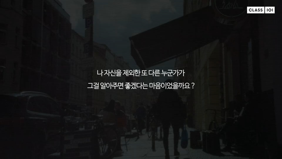 우리가 글을 쓰는 이유는 결국 누군가가 내 마음을 알아주었으면 하는 마음 때문일지도 모릅니다. "날 봐줘. 이해해 줘. 칭찬해 줘." 이 말은 결국 가장 가까운 사람에게 전하고 싶은 말일 때가 많죠.