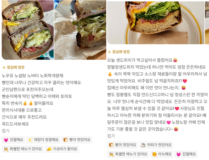 - 무거운 식사 대신 가볍게: 포천의 거한 메뉴를 선택하기 애매할 때 속이 편안하고 깔끔한 로컬 샌드위치로 가볍게 속을 채울 수 있습니다.